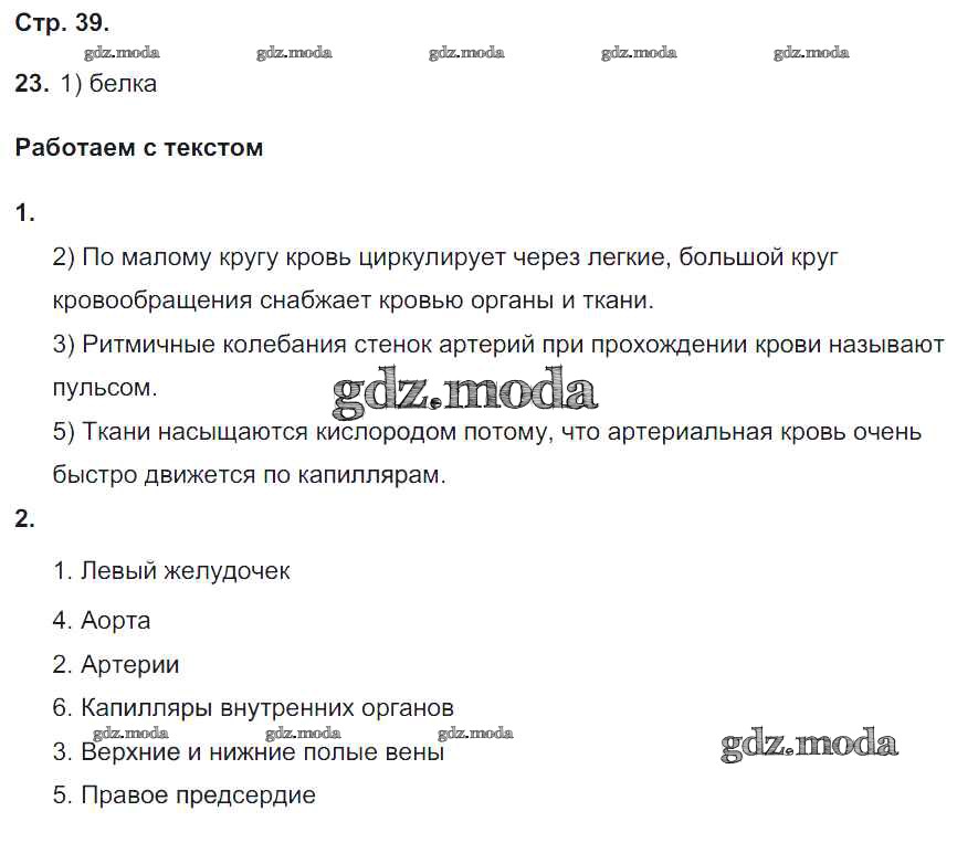 ГДЗ решение к заданию № 39 Биология 8 класс тетрадь-тренажёр Сухорукова Л.Н. Просвещение 2017 ФГОС бесплатно на гдз.мода!