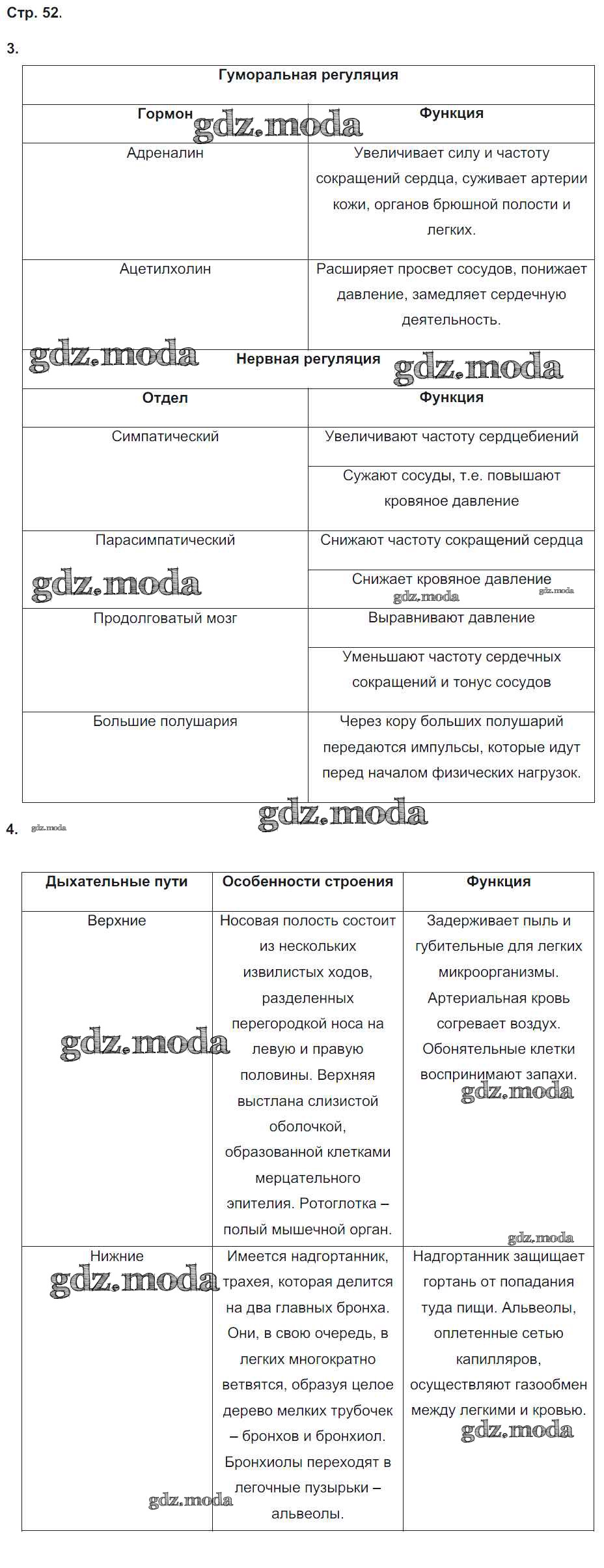 ГДЗ решение к заданию № 52 Биология 8 класс тетрадь-тренажёр Сухорукова Л.Н. Просвещение 2017 ФГОС бесплатно на гдз.мода!