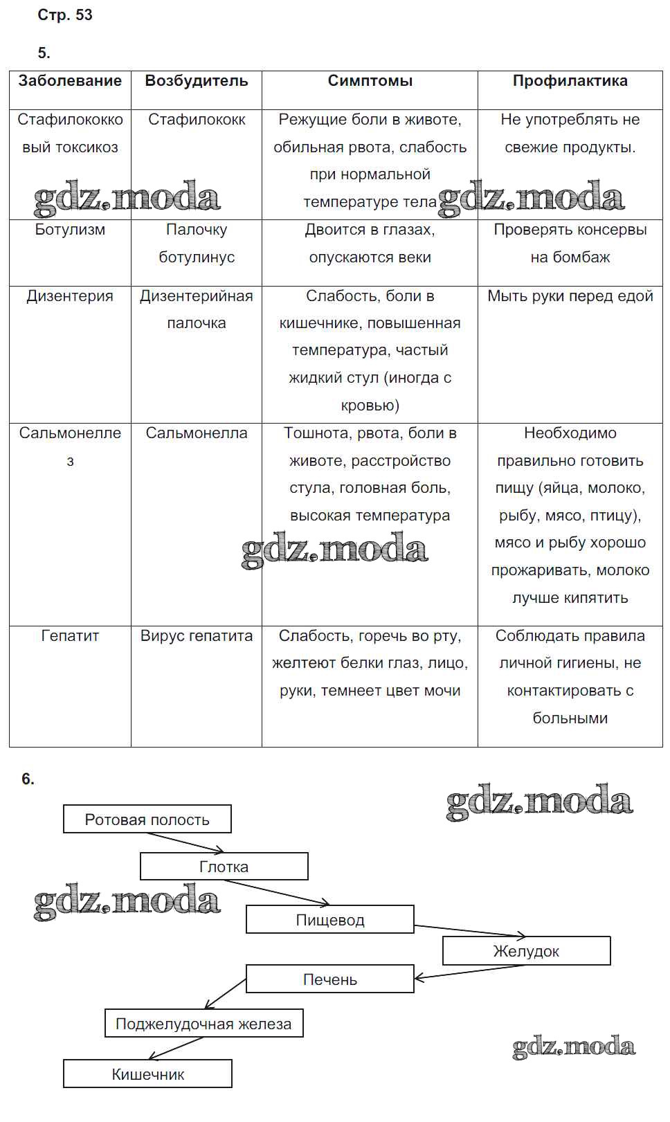 ГДЗ решение к заданию № 53 Биология 8 класс тетрадь-тренажёр Сухорукова Л.Н. Просвещение 2017 ФГОС бесплатно на гдз.мода!