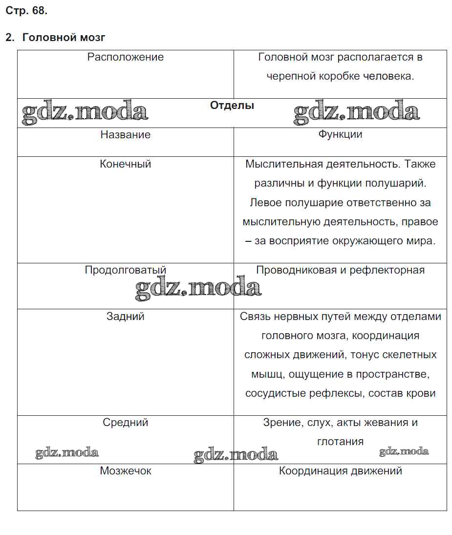 ГДЗ решение к заданию № 68 Биология 8 класс тетрадь-тренажёр Сухорукова Л.Н. Просвещение 2017 ФГОС бесплатно на гдз.мода!