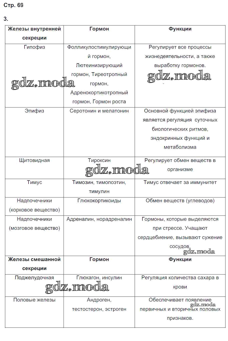 ГДЗ решение к заданию № 69 Биология 8 класс тетрадь-тренажёр Сухорукова Л.Н. Просвещение 2017 ФГОС бесплатно на гдз.мода!