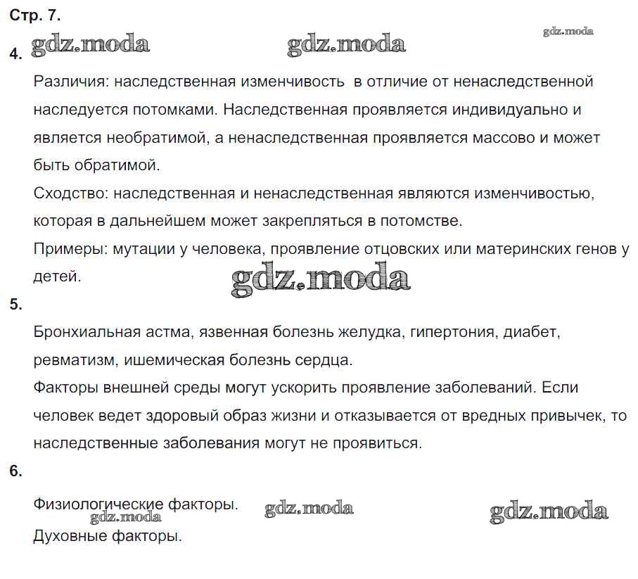 ГДЗ решение к заданию № 7 Биология 8 класс тетрадь-тренажёр Сухорукова Л.Н. Просвещение 2017 ФГОС бесплатно на гдз.мода!