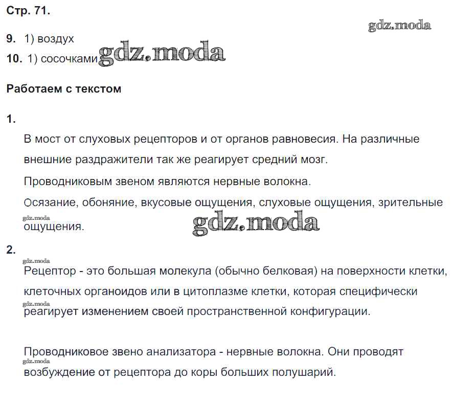 ГДЗ решение к заданию № 71 Биология 8 класс тетрадь-тренажёр Сухорукова Л.Н. Просвещение 2017 ФГОС бесплатно на гдз.мода!
