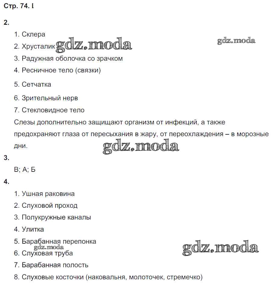 ГДЗ решение к заданию № 74 Биология 8 класс тетрадь-тренажёр Сухорукова Л.Н. Просвещение 2017 ФГОС бесплатно на гдз.мода!