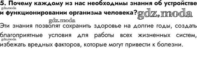 ГДЗ решение к заданию № 5 Биология 8 класс Драгомилов А.Г. Просвещение 2022 ФГОС бесплатно на гдз.мода!