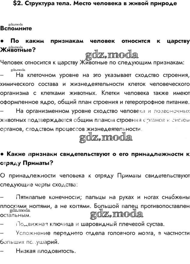 ГДЗ решение к заданию № Вспомним Биология 8 класс Драгомилов А.Г. Просвещение 2022 ФГОС бесплатно на гдз.мода!