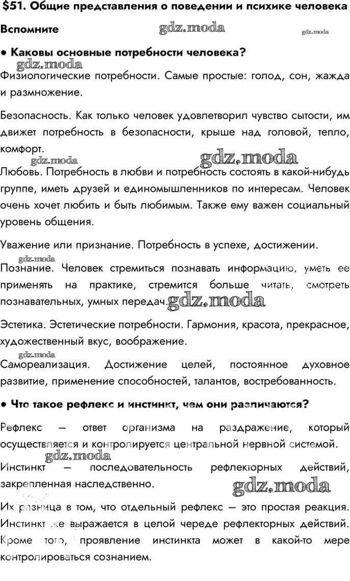 ОТВЕТ на задание № Вспомним Учебник по Биологии 8 класс Драгомилов Алгоритм успеха
