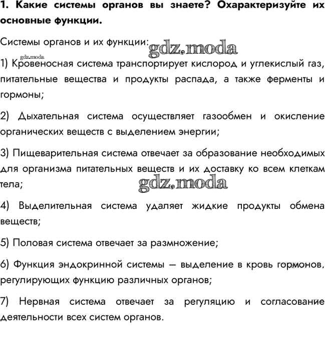 ГДЗ решение к заданию № 1 Биология 8 класс Пасечник В.В. Просвещение 2016 ФГОС бесплатно на гдз.мода!