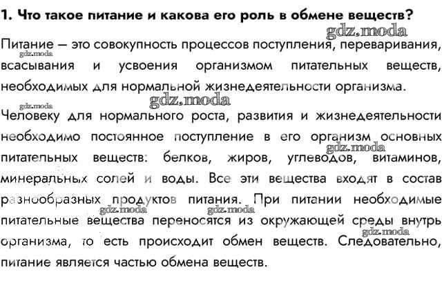 ГДЗ решение к заданию № 1 Биология 8 класс Пасечник В.В. Просвещение 2016 ФГОС бесплатно на гдз.мода!