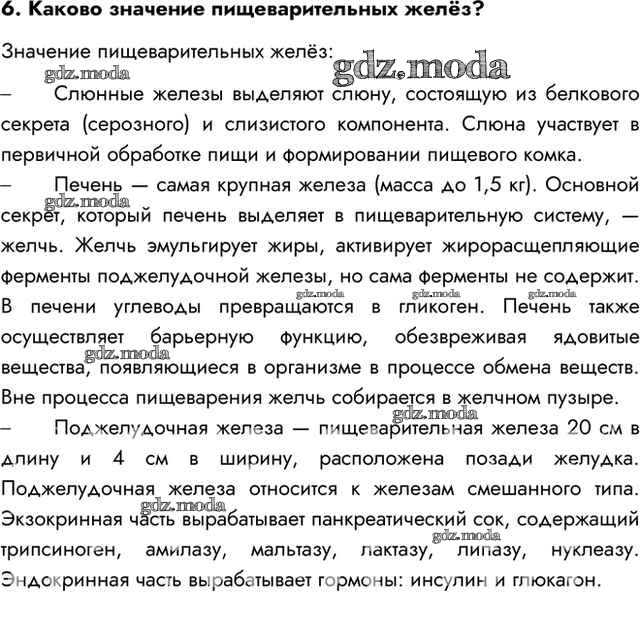 ГДЗ решение к заданию № 6 Биология 8 класс Пасечник В.В. Просвещение 2016 ФГОС бесплатно на гдз.мода!