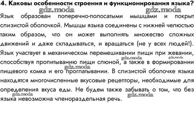 ГДЗ решение к заданию № 4 Биология 8 класс Пасечник В.В. Просвещение 2016 ФГОС бесплатно на гдз.мода!