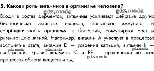 ГДЗ решение к заданию № 5 Биология 8 класс Пасечник В.В. Просвещение 2016 ФГОС бесплатно на гдз.мода!