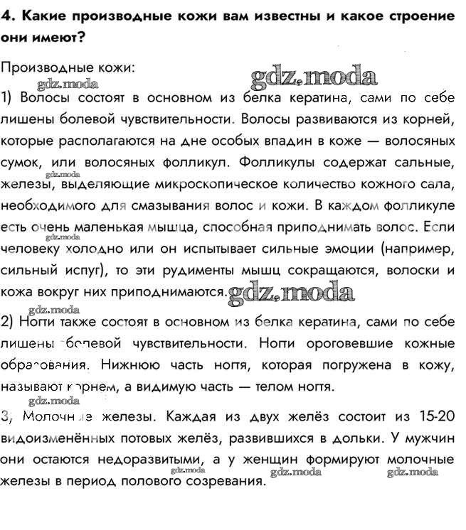 ГДЗ решение к заданию № 4 Биология 8 класс Пасечник В.В. Просвещение 2016 ФГОС бесплатно на гдз.мода!