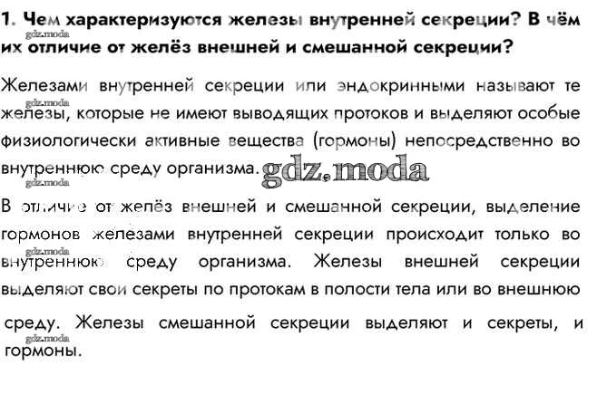 ГДЗ решение к заданию № 1 Биология 8 класс Пасечник В.В. Просвещение 2016 ФГОС бесплатно на гдз.мода!