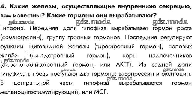 ГДЗ решение к заданию № 4 Биология 8 класс Пасечник В.В. Просвещение 2016 ФГОС бесплатно на гдз.мода!