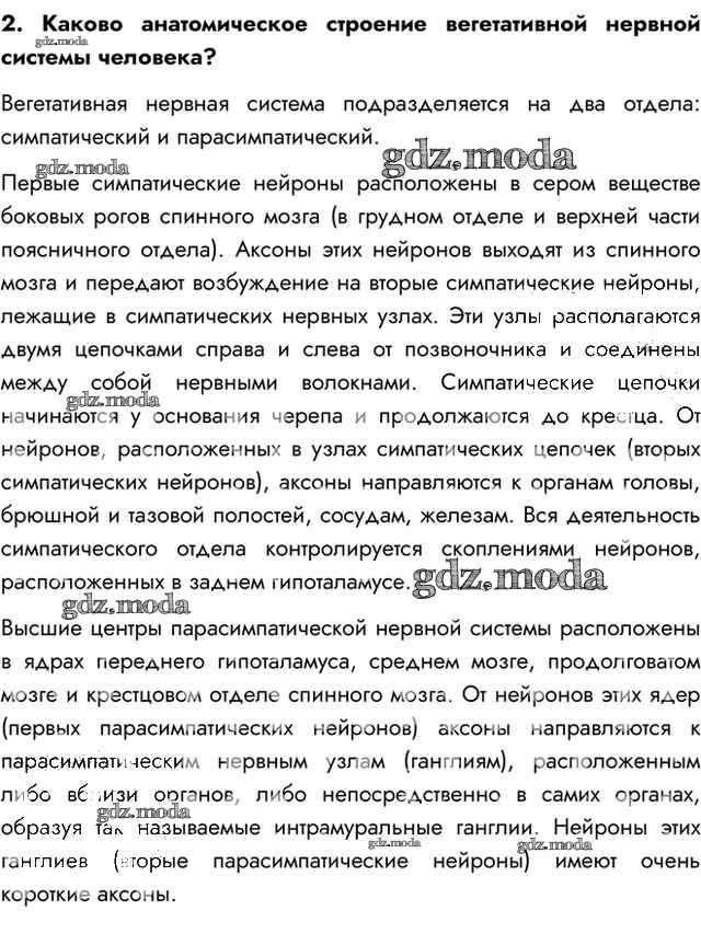 ГДЗ решение к заданию № 2 Биология 8 класс Пасечник В.В. Просвещение 2016 ФГОС бесплатно на гдз.мода!