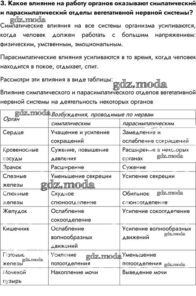 ГДЗ решение к заданию № 3 Биология 8 класс Пасечник В.В. Просвещение 2016 ФГОС бесплатно на гдз.мода!