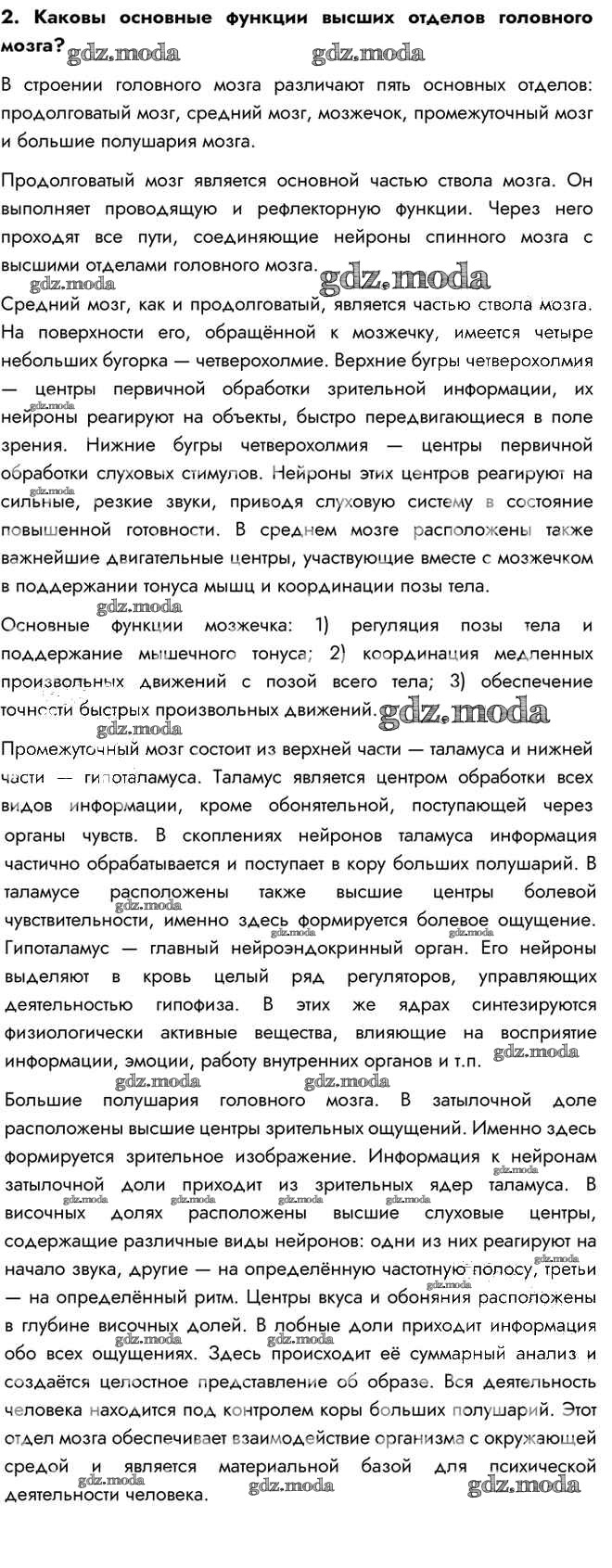 ГДЗ решение к заданию № 2 Биология 8 класс Пасечник В.В. Просвещение 2016 ФГОС бесплатно на гдз.мода!