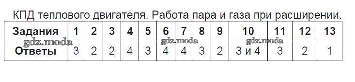 ОТВЕТ на задание № 7. КПД теплового двигателя. Работа пара и газа при расширении Тесты по Физике 8 класс Чеботарева УМК