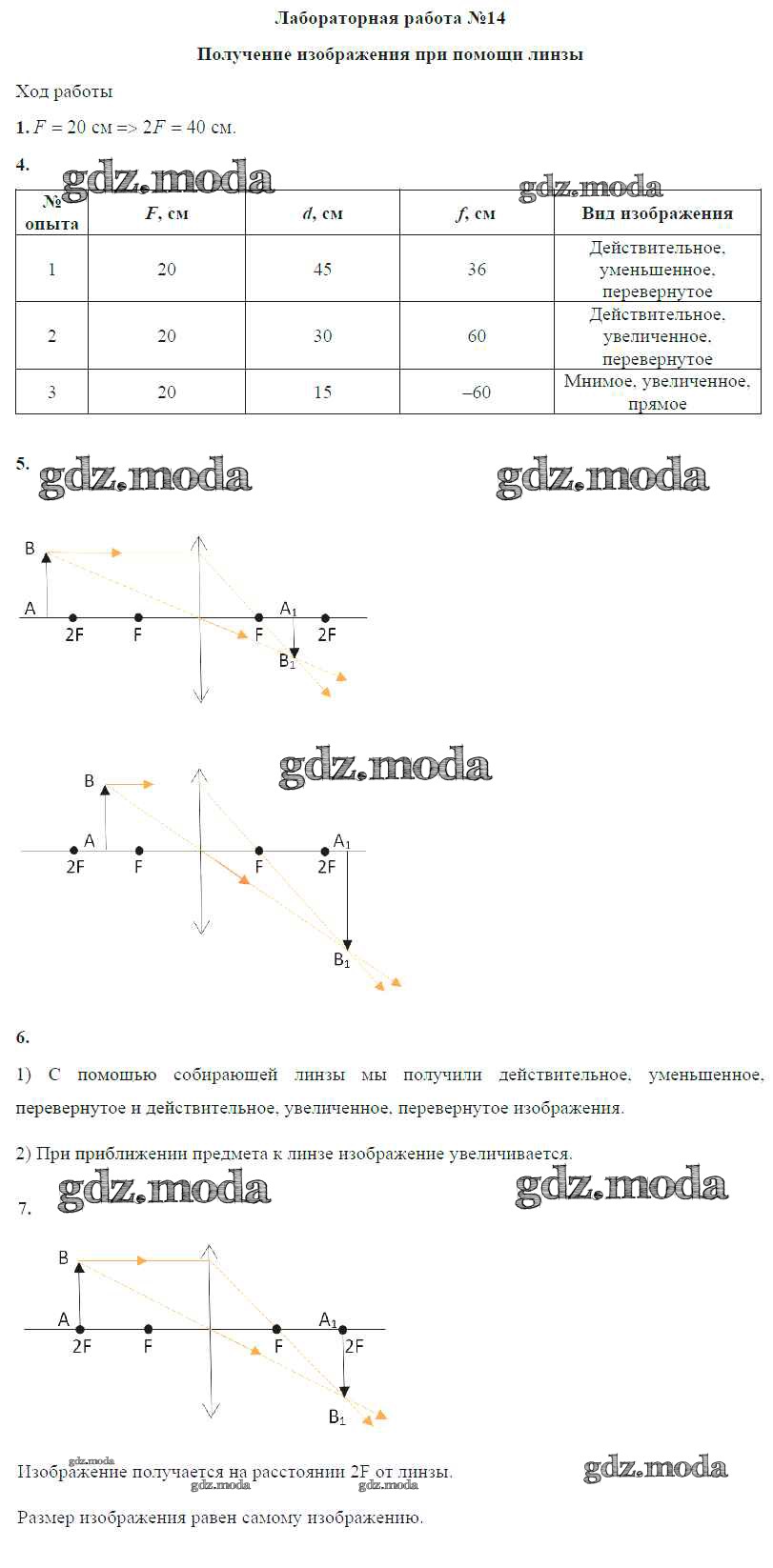 ОТВЕТ на задание № ЛР №14. Получение изображения при помощи линзы Учебник по Физике 8 класс Громов