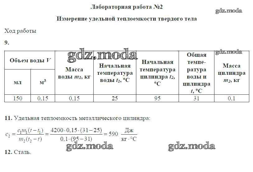 ОТВЕТ на задание № ЛР №2. Измерение удельной теплоемкости твердого тела Учебник по Физике 8 класс Громов