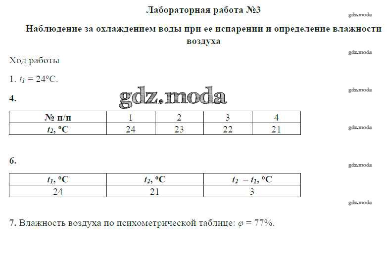 ОТВЕТ на задание № ЛР №3. Наблюдение за охлаждением воды при ее испарении и определение влажности воздуха Учебник по Физике 8 класс Громов