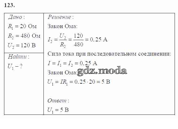 ГДЗ решение к заданию № 123 Физика 8 класс Громов С.В. Просвещение 2018 ФГОС бесплатно на гдз.мода!