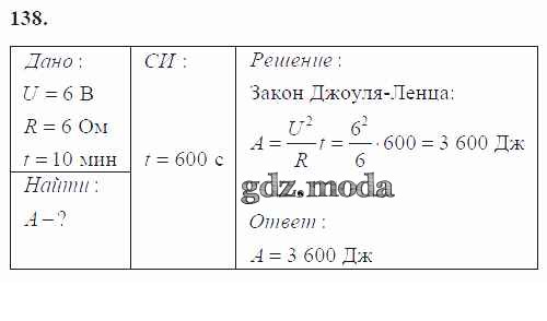 ГДЗ решение к заданию № 138 Физика 8 класс Громов С.В. Просвещение 2018 ФГОС бесплатно на гдз.мода!