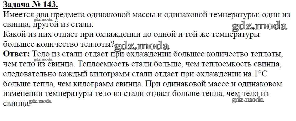 ОТВЕТ на задание № 143 Учебник по Физике 8 класс Громов