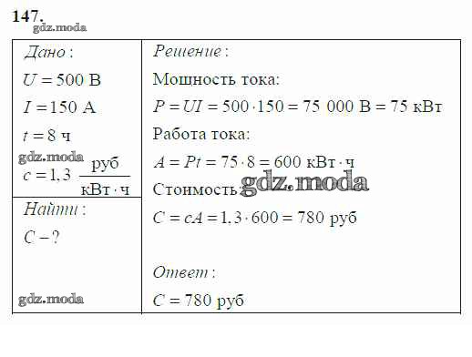 ГДЗ решение к заданию № 147 Физика 8 класс Громов С.В. Просвещение 2018 ФГОС бесплатно на гдз.мода!