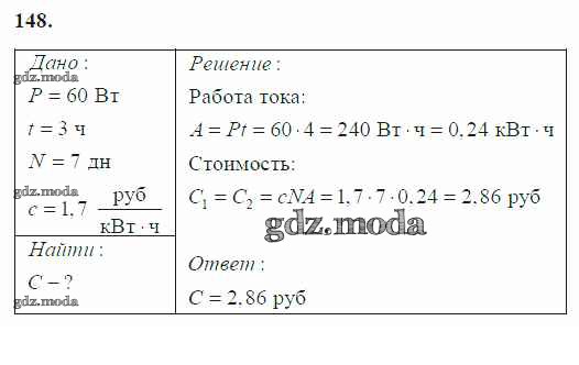 ГДЗ решение к заданию № 148 Физика 8 класс Громов С.В. Просвещение 2018 ФГОС бесплатно на гдз.мода!