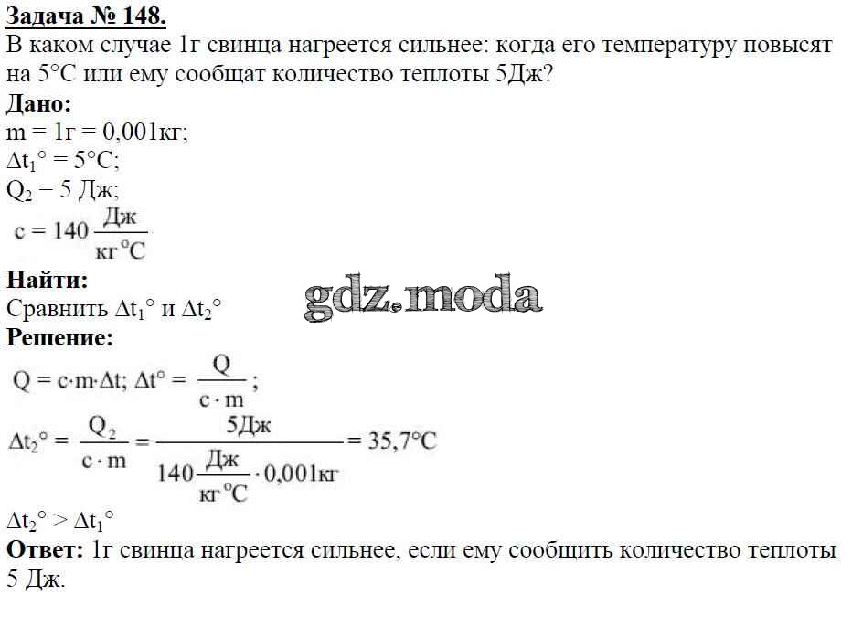 ОТВЕТ на задание № 148 Учебник по Физике 8 класс Громов