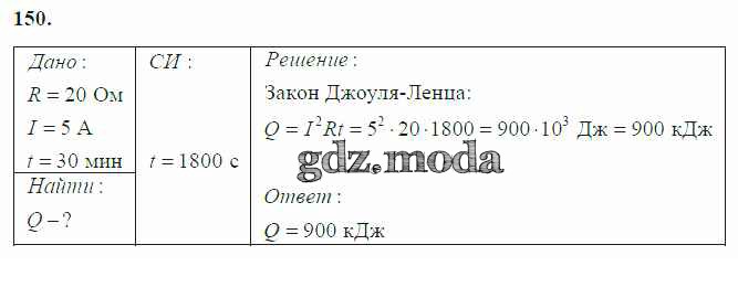 ГДЗ решение к заданию № 150 Физика 8 класс Громов С.В. Просвещение 2018 ФГОС бесплатно на гдз.мода!