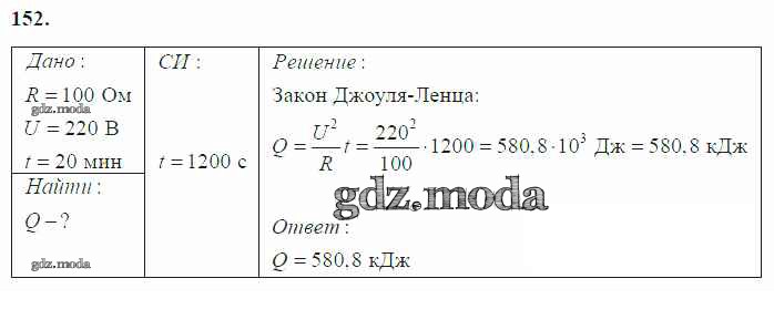 ГДЗ решение к заданию № 152 Физика 8 класс Громов С.В. Просвещение 2018 ФГОС бесплатно на гдз.мода!