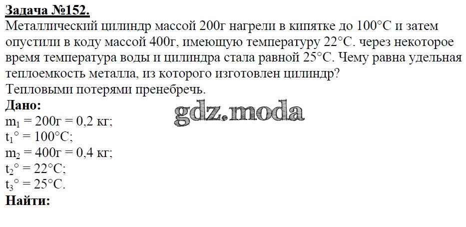 ОТВЕТ на задание № 152 Учебник по Физике 8 класс Громов