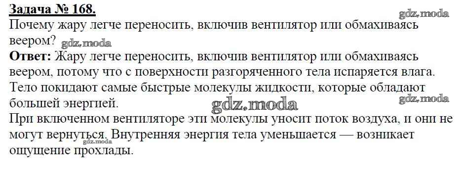ОТВЕТ на задание № 168 Учебник по Физике 8 класс Громов