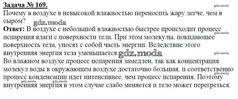 ОТВЕТ на задание № 169 Учебник по Физике 8 класс Громов