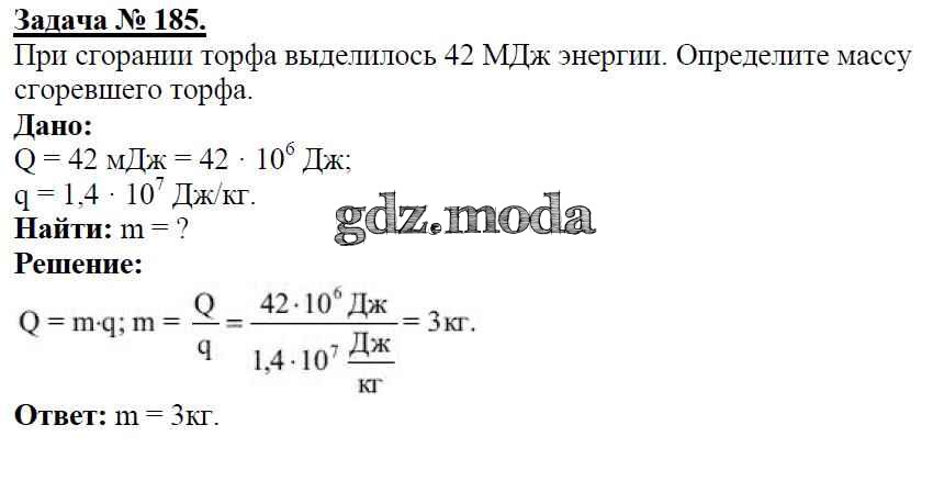 ГДЗ решение к заданию № 185 Физика 8 класс Громов С.В. Просвещение 2018 ФГОС бесплатно на гдз.мода!