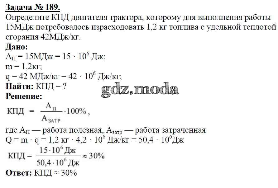 ГДЗ решение к заданию № 189 Физика 8 класс Громов С.В. Просвещение 2018 ФГОС бесплатно на гдз.мода!
