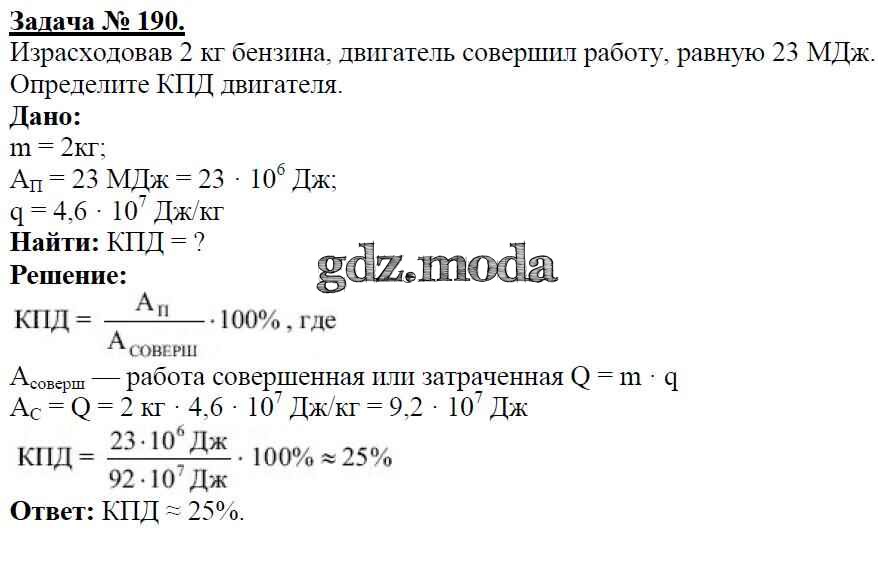 ОТВЕТ на задание № 190 Учебник по Физике 8 класс Громов