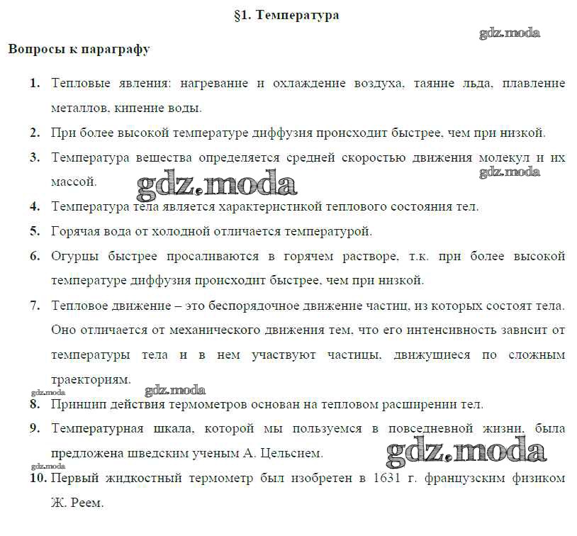 ГДЗ решение к заданию № § 1. Температура Физика 8 класс Громов С.В. Просвещение 2018 ФГОС бесплатно на гдз.мода!
