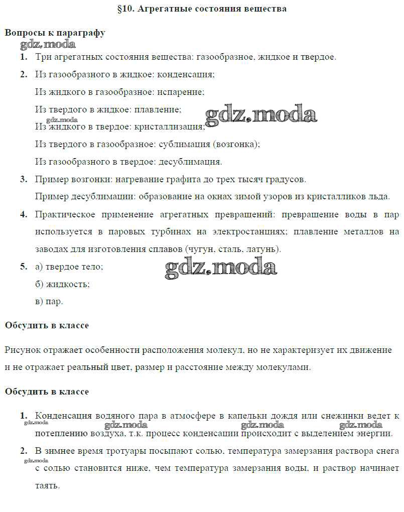 ГДЗ решение к заданию № § 10. Агрегатные состояния вещества Физика 8 класс Громов С.В. Просвещение 2018 ФГОС бесплатно на гдз.мода!