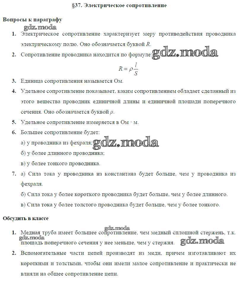 ОТВЕТ на задание № § 37. Электрическое сопротивление Учебник по Физике 8 класс Громов