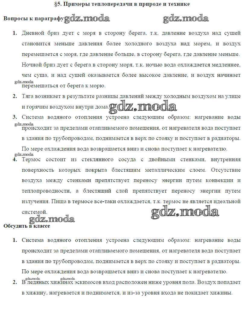 ГДЗ решение к заданию № § 5. Примеры теплопередачи в природе и технике Физика 8 класс Громов С.В. Просвещение 2018 ФГОС бесплатно на гдз.мода!