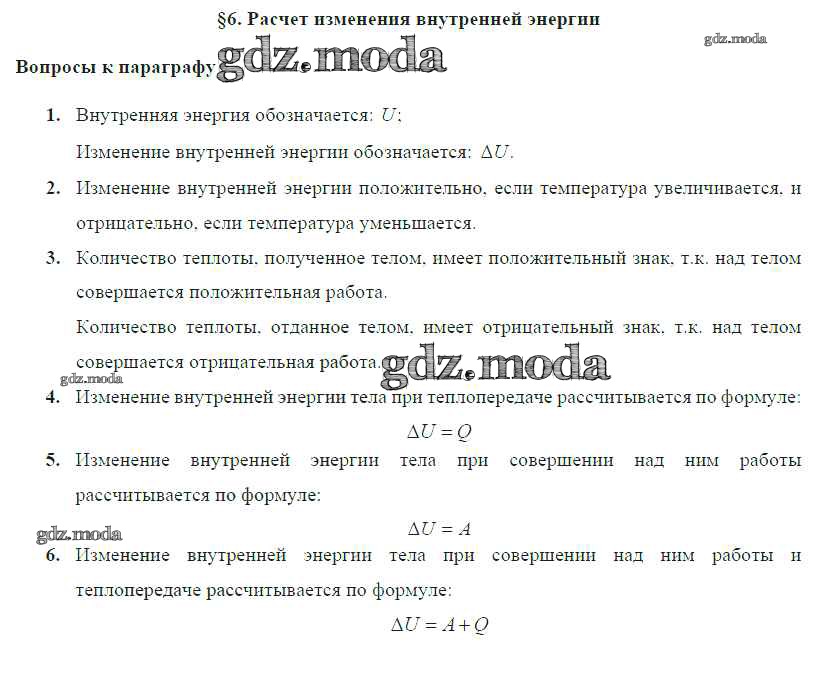 ОТВЕТ на задание № § 6. Расчет изменения внутренней энергии Учебник по Физике 8 класс Громов