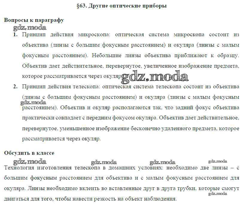 ГДЗ решение к заданию № § 63. Другие оптические приборы Физика 8 класс Громов С.В. Просвещение 2018 ФГОС бесплатно на гдз.мода!