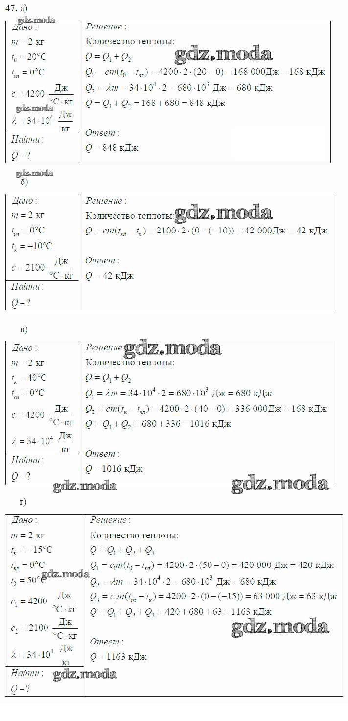 ГДЗ решение к заданию № 47 Физика 8 класс Громов С.В. Просвещение 2018 ФГОС бесплатно на гдз.мода!
