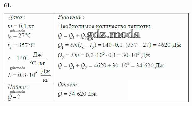 ОТВЕТ на задание № 61 Учебник по Физике 8 класс Громов
