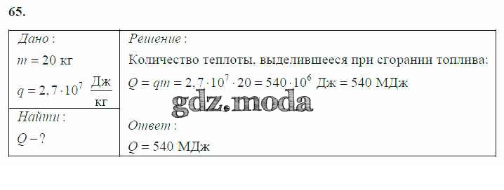 ГДЗ решение к заданию № 65 Физика 8 класс Громов С.В. Просвещение 2018 ФГОС бесплатно на гдз.мода!