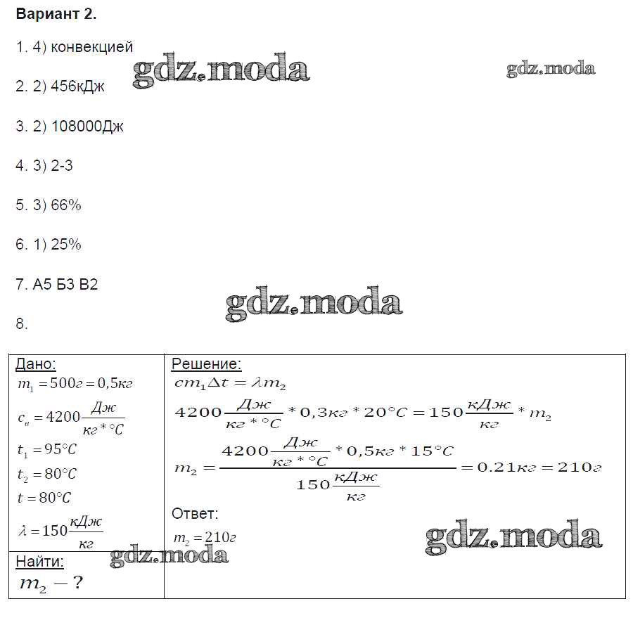 ОТВЕТ на задание № вариант-2 Контрольные и самостоятельные работы по Физике 8 класс Громцева УМК
